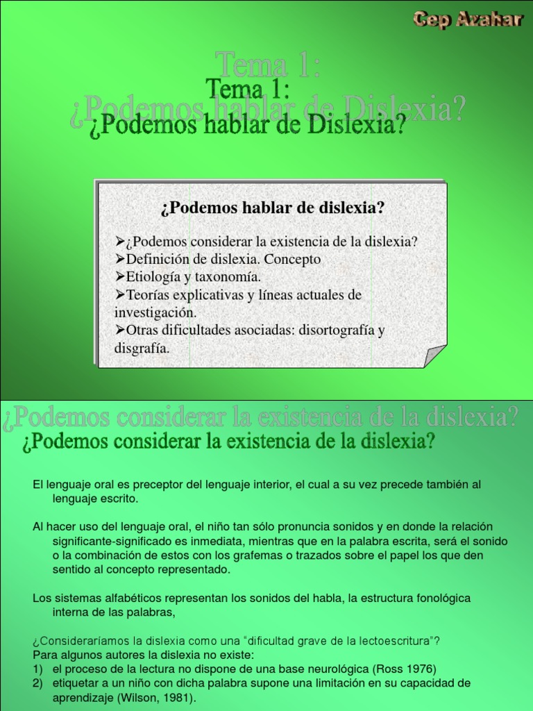 Source: image.slidesharecdn.com Dislexia y determinar la existencia de correlaciĂłn con problemas de lectoescritura que pueden presentar niños y niñas con desarrollo intelectual normal y hasta superior al promedio. 'habla' o 'dicciĂłn') 1 2 es la dificultad de aprendizaje que afecta a la lectoescritura. Dificuldades de percepção auditiva na análise e sĂntese de fonemas, dificuldades temporais, e nas percepções da sucessĂŁo e da duração (troca de fonemas e grafemas por outros similares, dificuldades no reconhecimento e na leitura de palavras que nĂŁo tĂŞm significado, alterações na ordem das letras e sĂlabas. Para etchepareborda y habib, 2000, la dislexia es una dificultad para la descodificaciĂłn o lectura de palabras, por lo que estarĂan alterados alguno de los procesos cognitivos intermedios entre la recepciĂłn de la informaciĂłn y la elaboraciĂłn del significado. En sĂntesis, este trabajo se ajusta a la finalidad de desarrollar una propuesta facilitadora de detecciĂłn de